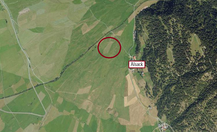 Die Liegenschaft befindet sich in der Katastralgemeinde Burgeis, etwas oberhalb von Alsack und hat eine Katasterfläche von 7.690 m².