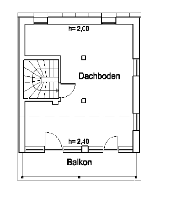 Im 2. Obergeschoss befindet sich der Dachboden mit einem weiteren Balkon.