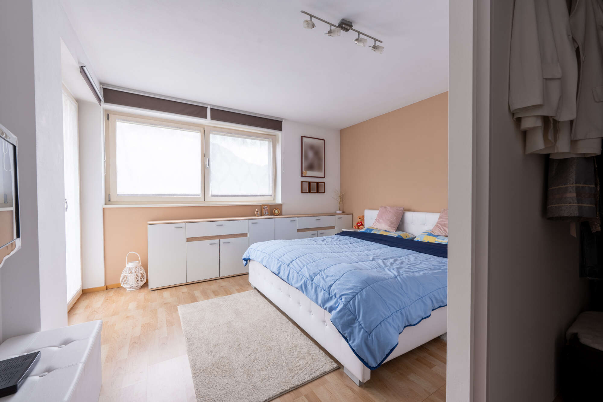 Im 1. Obergeschoss befinden sich drei Schlafzimmer, ein großes Badezimmer, sowie ein Balkon mit herrlichem Ausblick auf die umliegende Bergwelt des Vinschgaus.