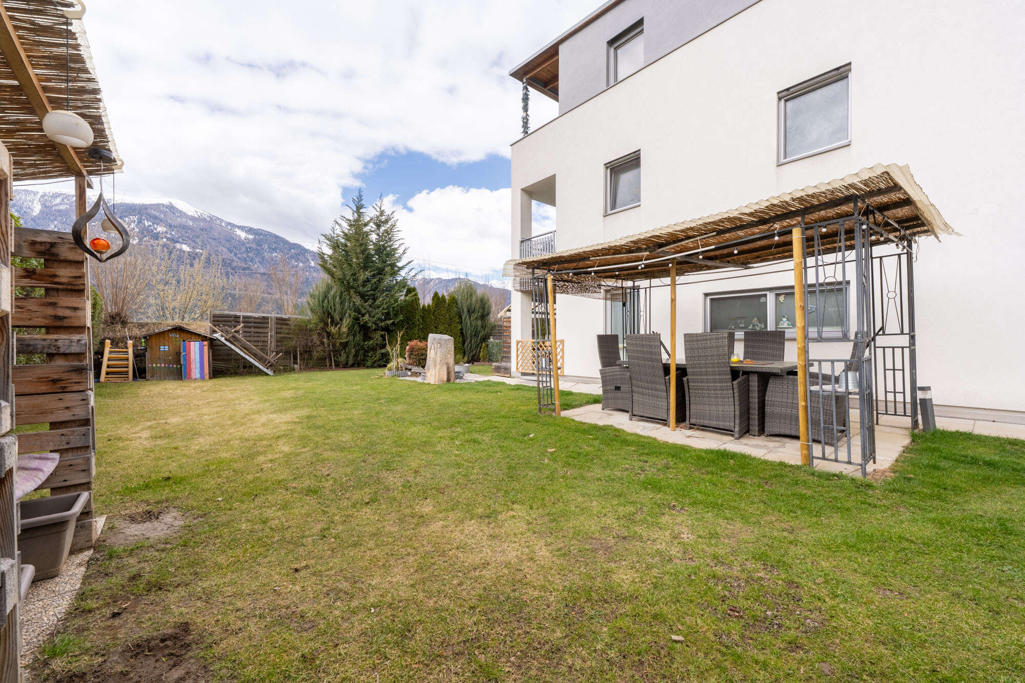 Von der sonnigen Terrasse aus gelangt man direkt in den vorgelagerten Garten mit einer Fläche von ca. 326 m².