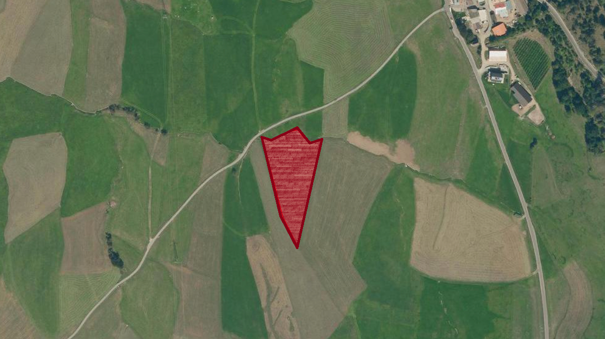 The property has a cadastral area of 6,150 m² and is currently used as a forage meadow.