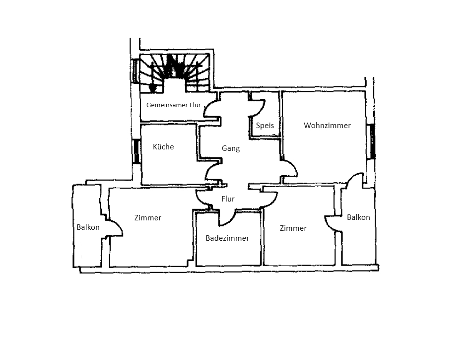 The apartment is located on the 1st floor of a three-family house and consists of a hallway, dining room, kitchen, living room, 2 bedrooms and a bathroom.