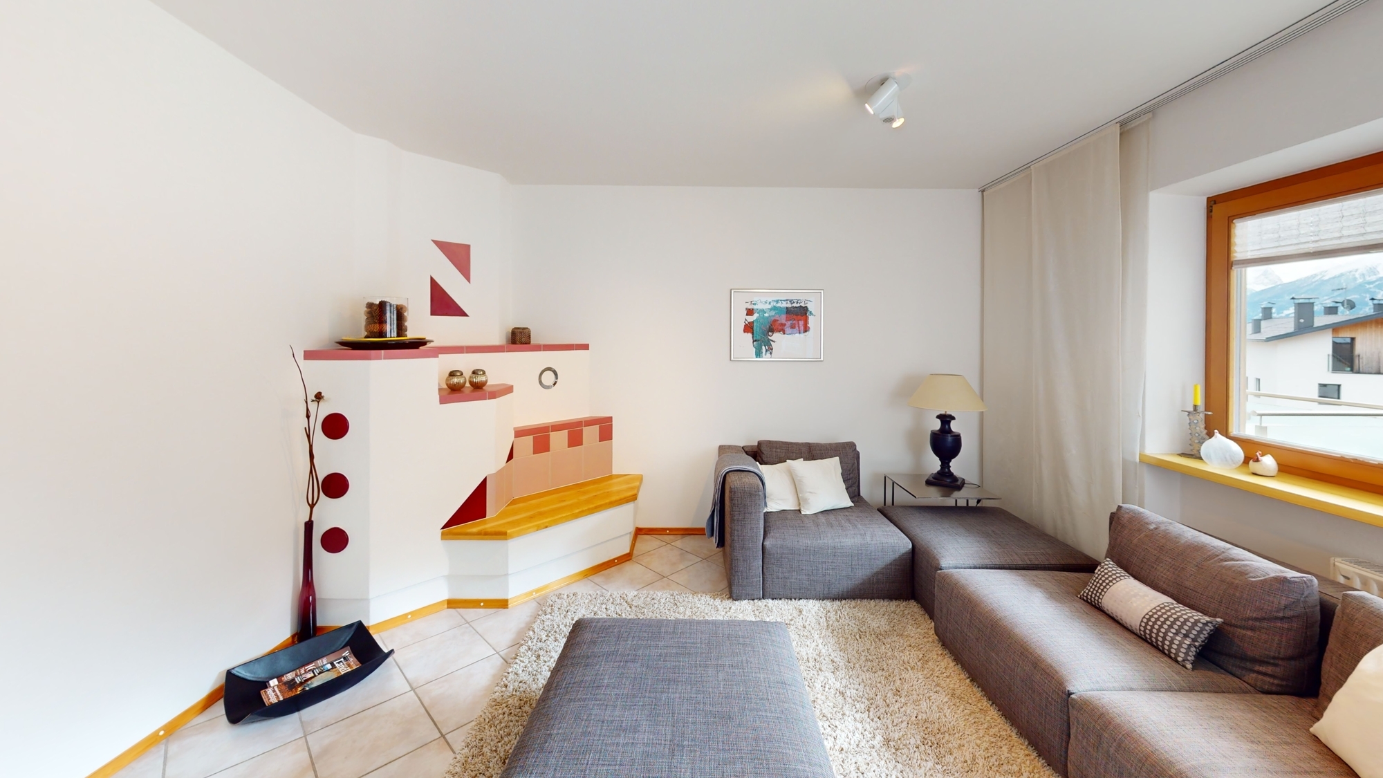 The apartment also has a south-facing balcony with a wonderful view of the surrounding mountains and another balcony on the north side.