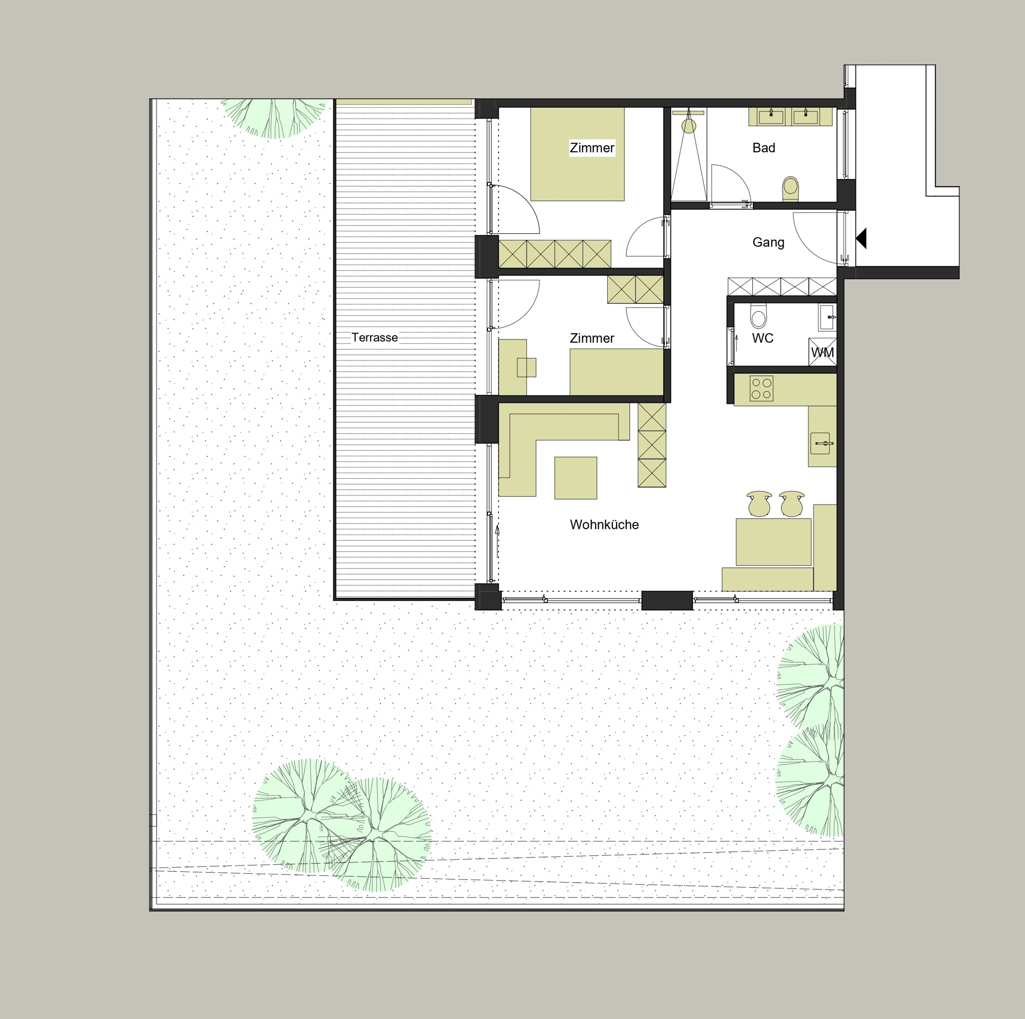The apartment extends over a generous area of approx. 90 m², distributed over two bedrooms, a bathroom, a day toilet and a south-facing kitchen-living room. With a total of three rooms, including two bedrooms and two bathrooms, this property offers both comfort and privacy for its future residents. The well thought-out layout and modern design of the rooms guarantee a living experience in a class of its own.