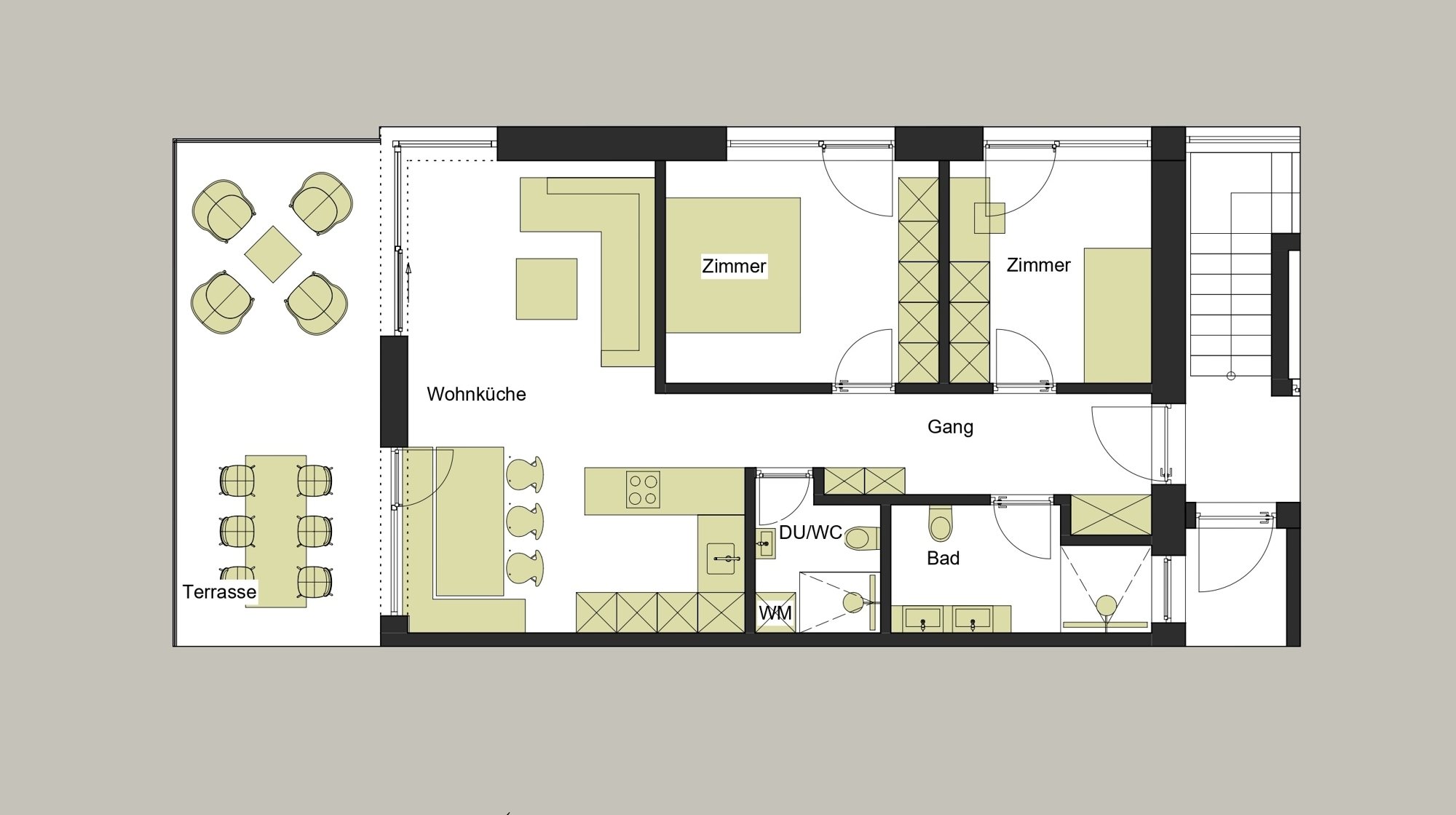 The apartment extends over a generous area of approx. 89 m², spread over two bedrooms, a bathroom, a day toilet and a west-facing kitchen-living room. With a total of three rooms, including two bedrooms and two bathrooms, this property offers both comfort and privacy for its future residents. The well thought-out layout and modern design of the rooms guarantee a living experience in a class of its own.
