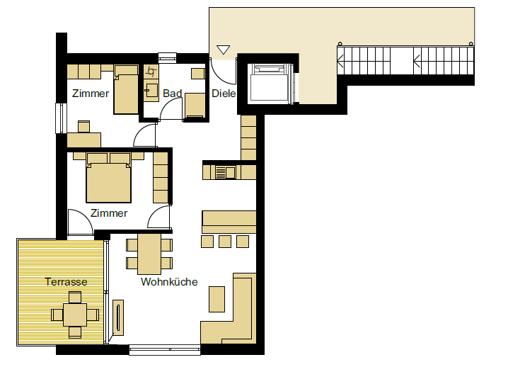 The apartment also has a terrace of approx. 13.12 m² and a cellar in the basement.