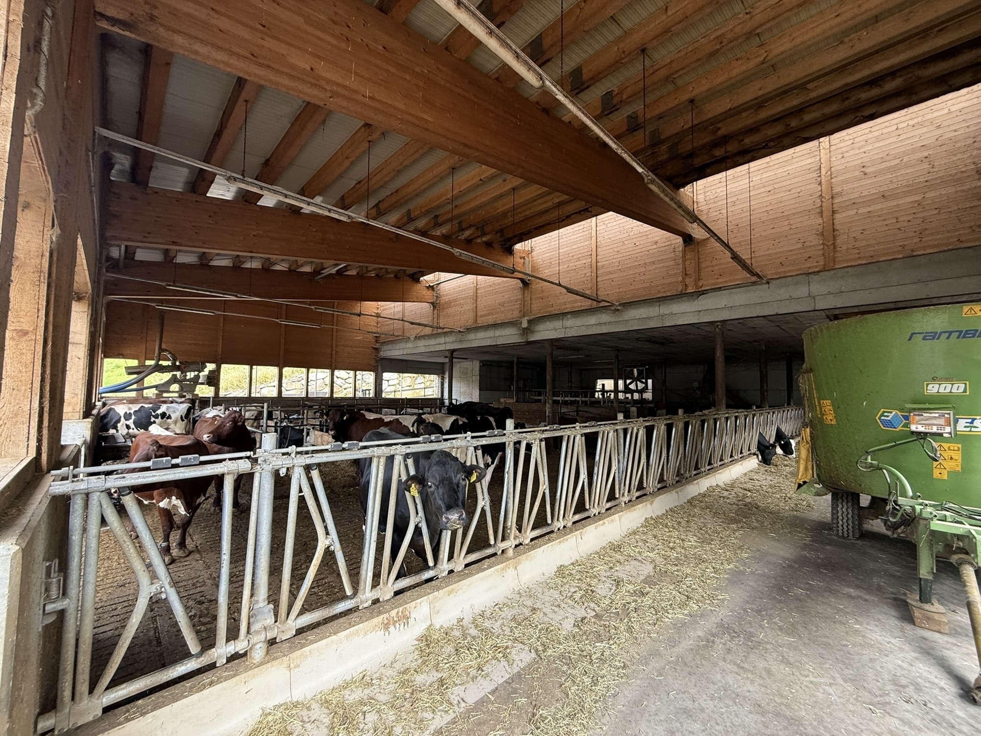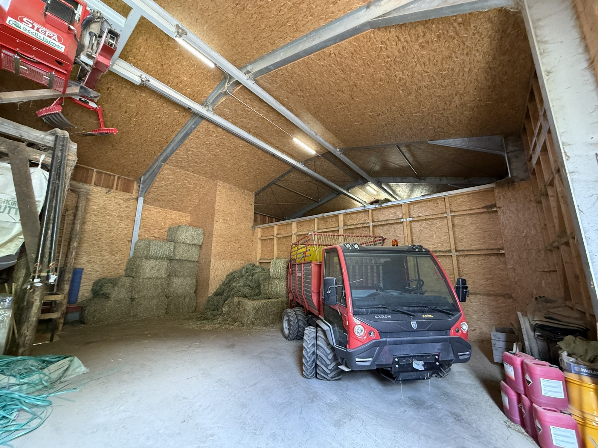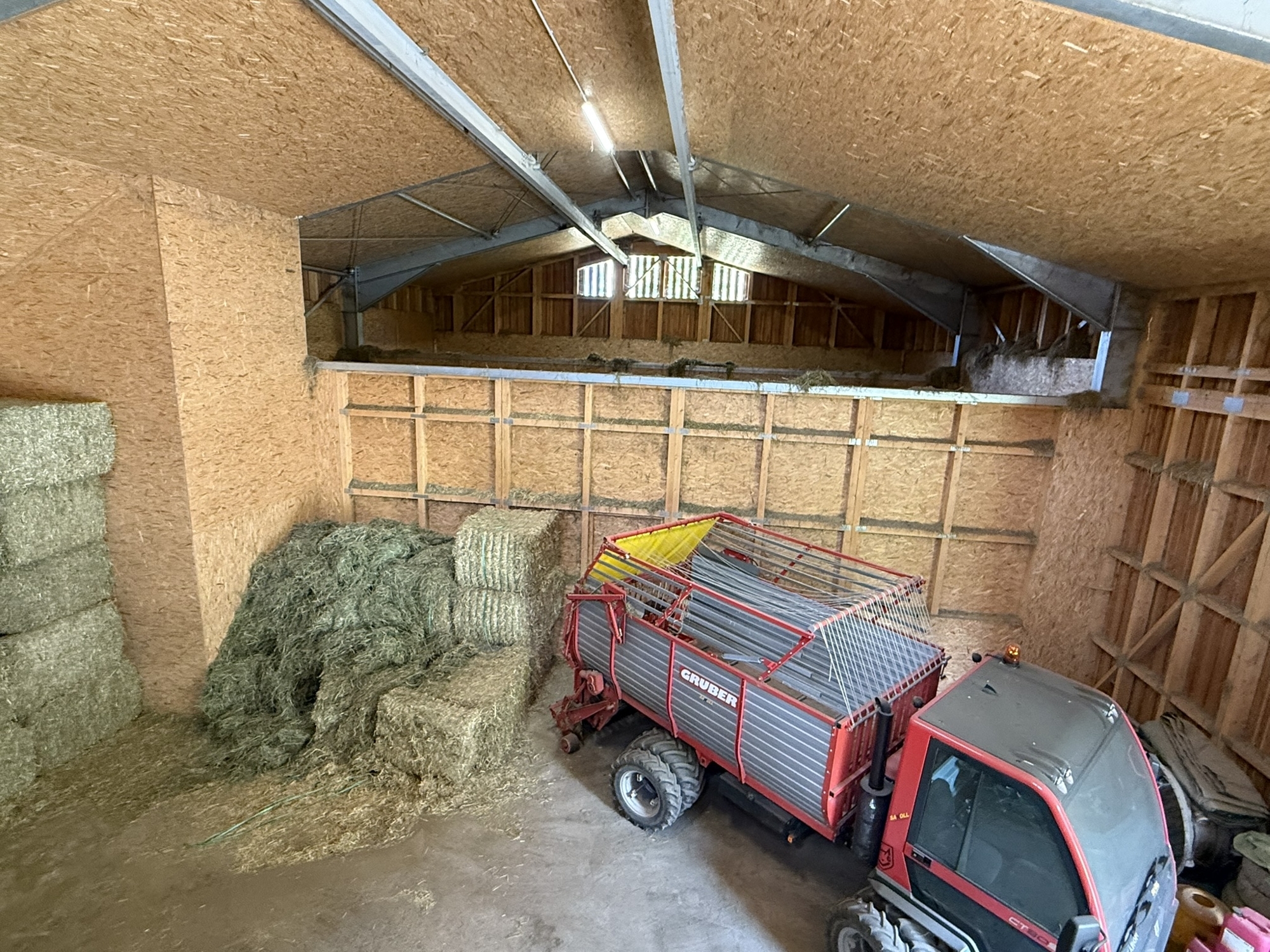 The farm building, including the barn, was newly built in 2017 and has state-of-the-art equipment such as a hay crane, hay ventilation, roof extraction and manure removal system. Mechanical and automated management is therefore guaranteed.