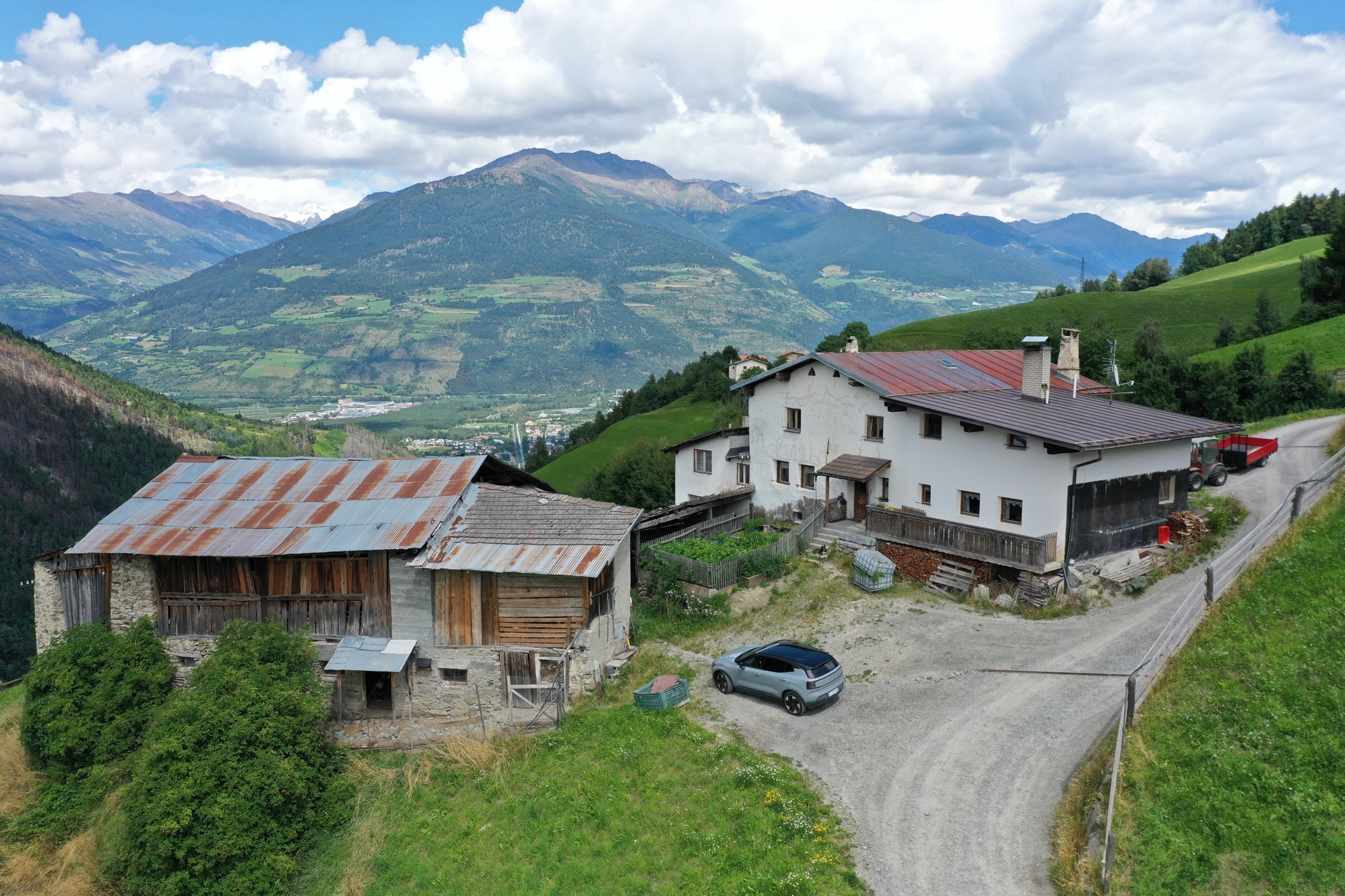On the sunny Prader Berg in Prad am Stilfserjoch, a closed farm with a surface area of around 8.5 hectares, embedded in the impressive mountain landscape at approx. 1,250 m above sea level, is for sale.