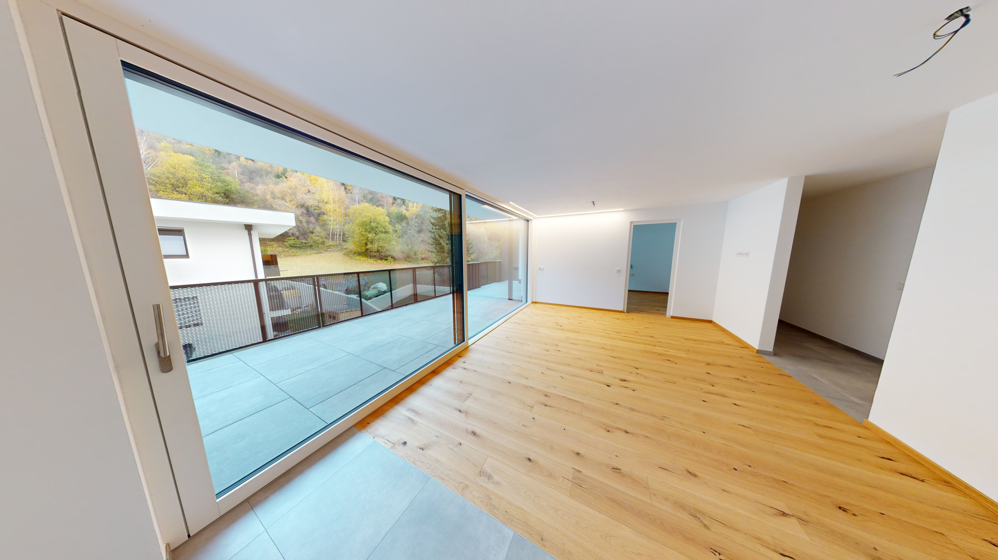 - High-quality natural wood flooring for the living areas and stoneware tiles for the bathrooms