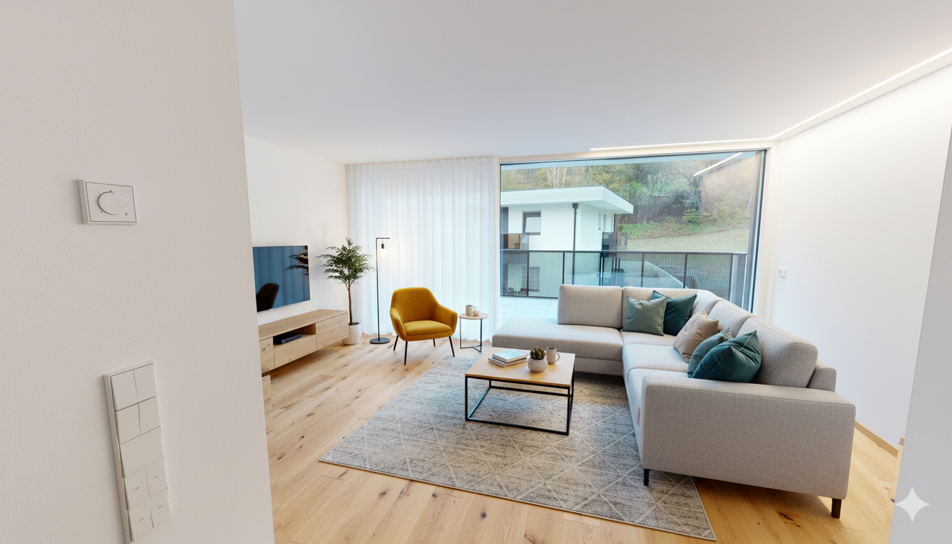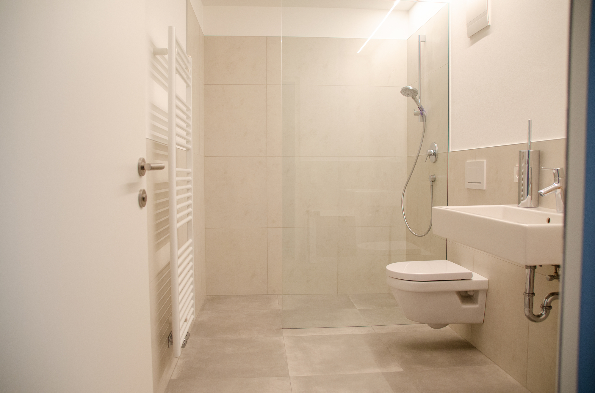 The residential complex is connected to the municipal district heating network. The rooms are heated with underfloor heating, whereby each room can be controlled separately using a thermostat. A Bagnotherm wall-mounted radiator is also installed in the bathroom.