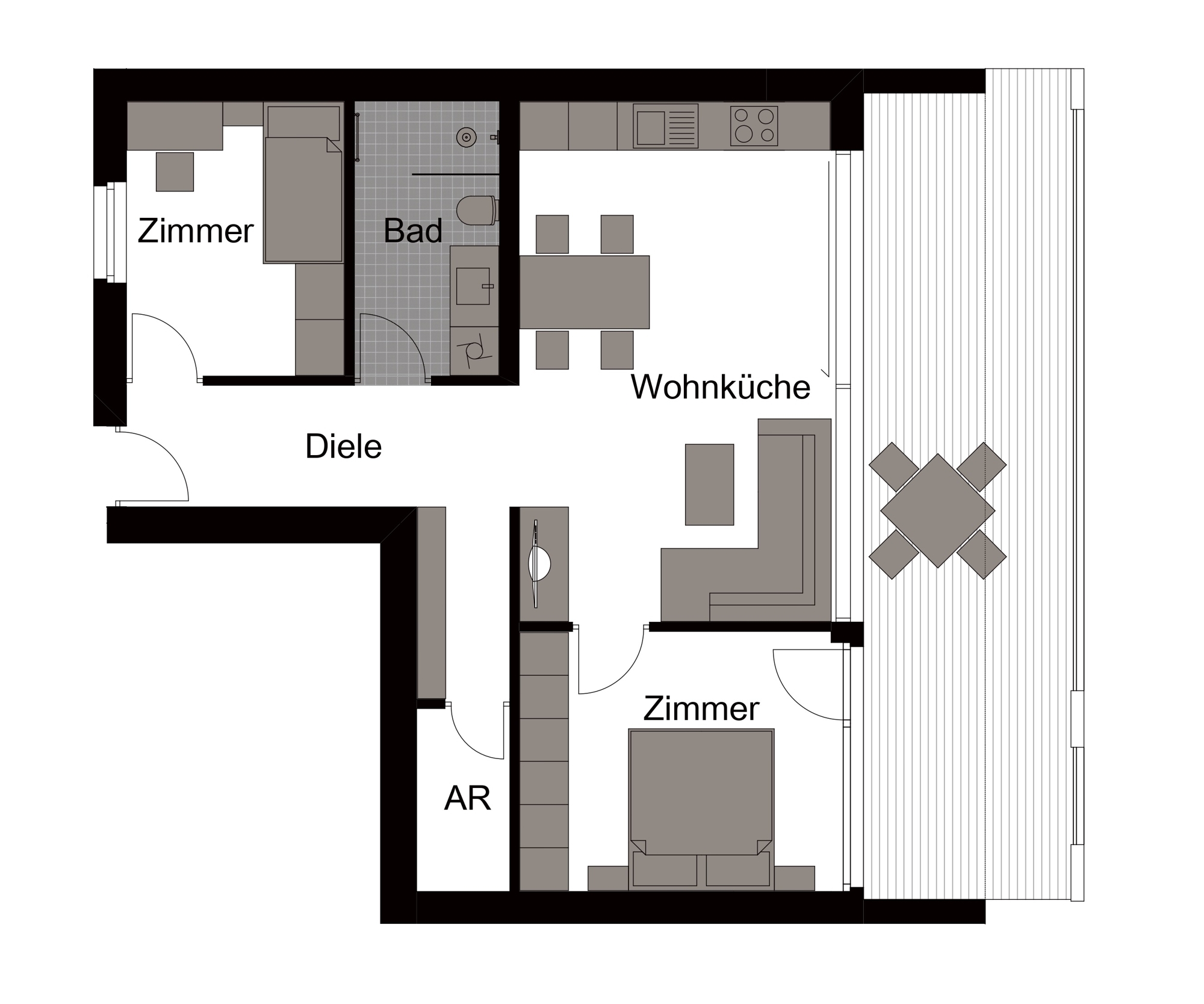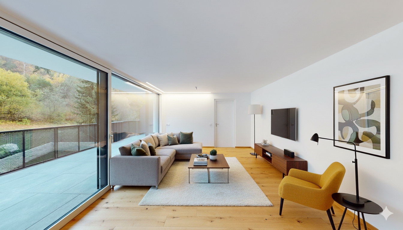 - Floor-to-ceiling window elements with triple thermal and sound insulation glazing