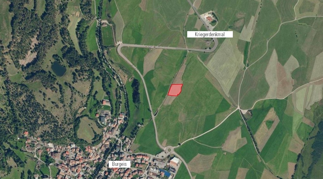 Zum Verkauf steht ein landwirtschaftliches Grundstück, in der Nähe des Kriegerdenkmals bei Burgeis.