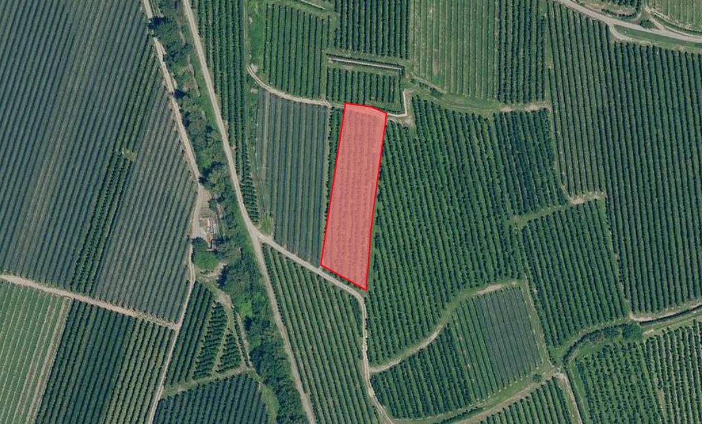 Die Liegenschaft hat eine Fläche von ca. 1.870 m² und ist mit Apfelbäumen, der Sorte Golden Delicious, bepflanzt.