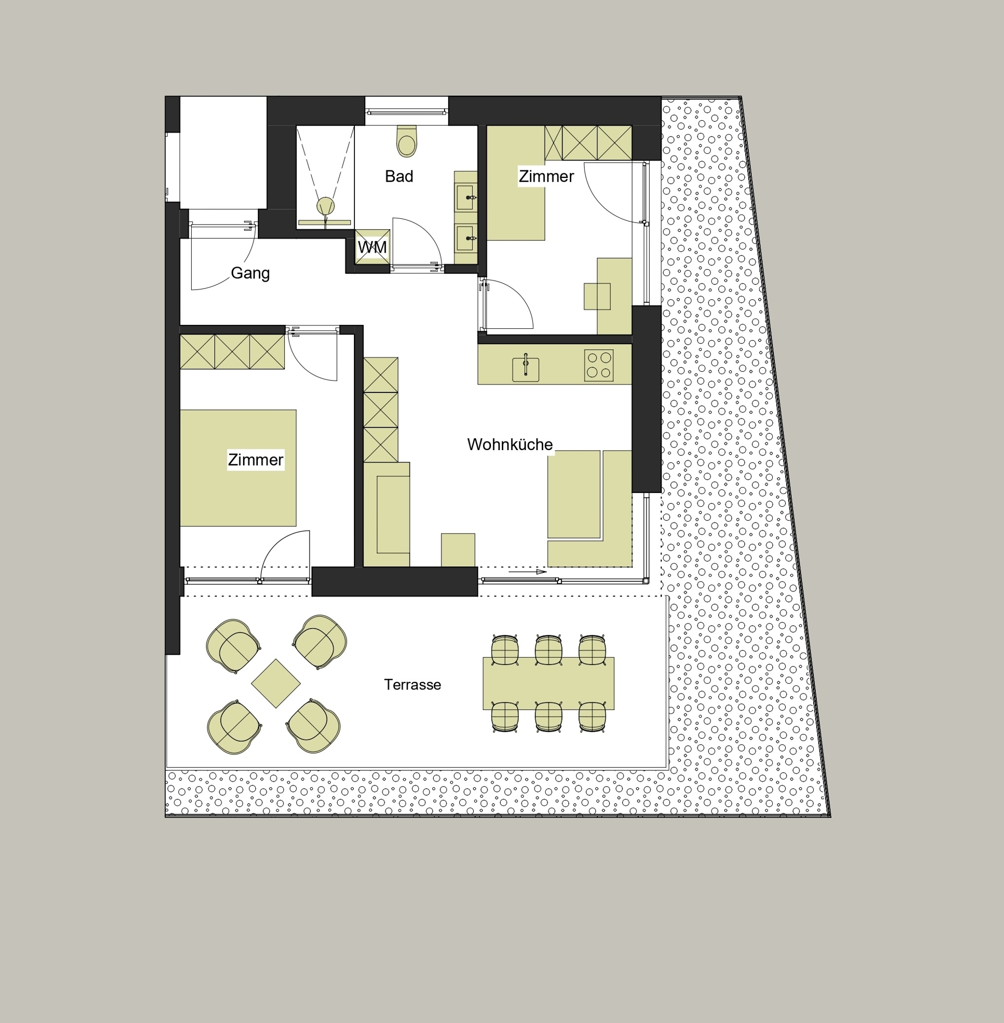 Die Wohnung erstreckt sich auf einer großzügigen Fläche von ca. 70 m², verteilt über zwei Schlafzimmer, einem Badezimmer, einem Tages WC und einer nach Süden ausgerichteten Wohnküche. Mit insgesamt drei Zimmern, darunter zwei Schlafzimmer und zwei Badezimmer, bietet dieses Objekt sowohl Komfort als auch Privatsphäre für ihre zukünftigen Bewohner. Durch die durchdachte Aufteilung und moderne Gestaltung der Räume wird ein Wohngefühl der Extraklasse garantiert.