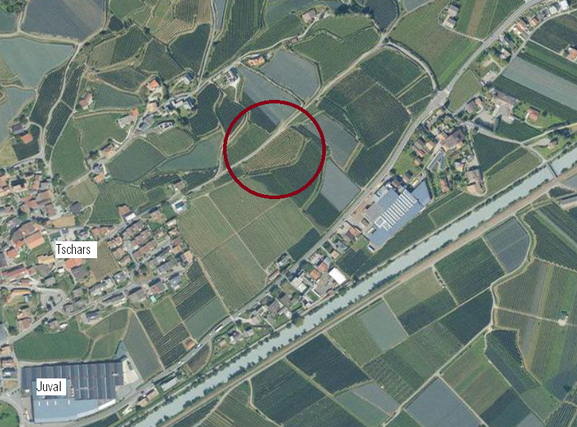 Zum Verkauf steht ein Obstwiese in Tschars. Die Liegenschaft hat eine Katasterfläche von 5.085 m² und ist mit Apfelbäumen der Sorte Golden bepflanzt.
