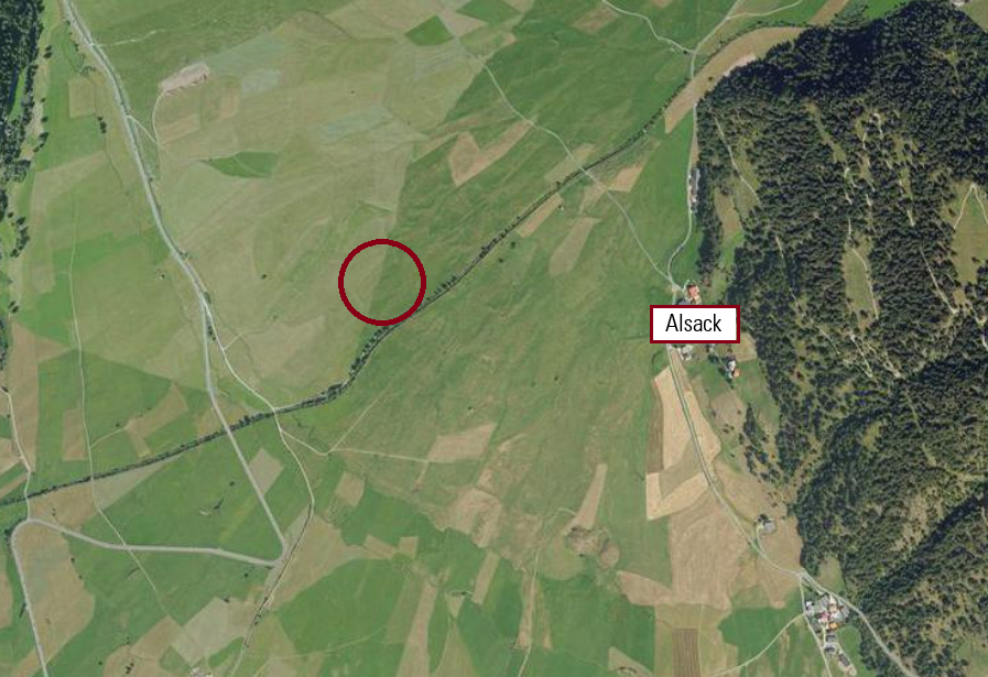 Zum Verkauf steht ein Grundstück in Burgeis, in der Nähe von Alsack.