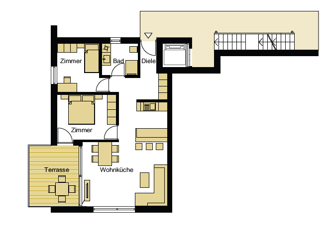 Zur Wohnung gehören zudem eine Terrasse mit ca. 13,12 m² und ein Keller im Untergeschoss.
