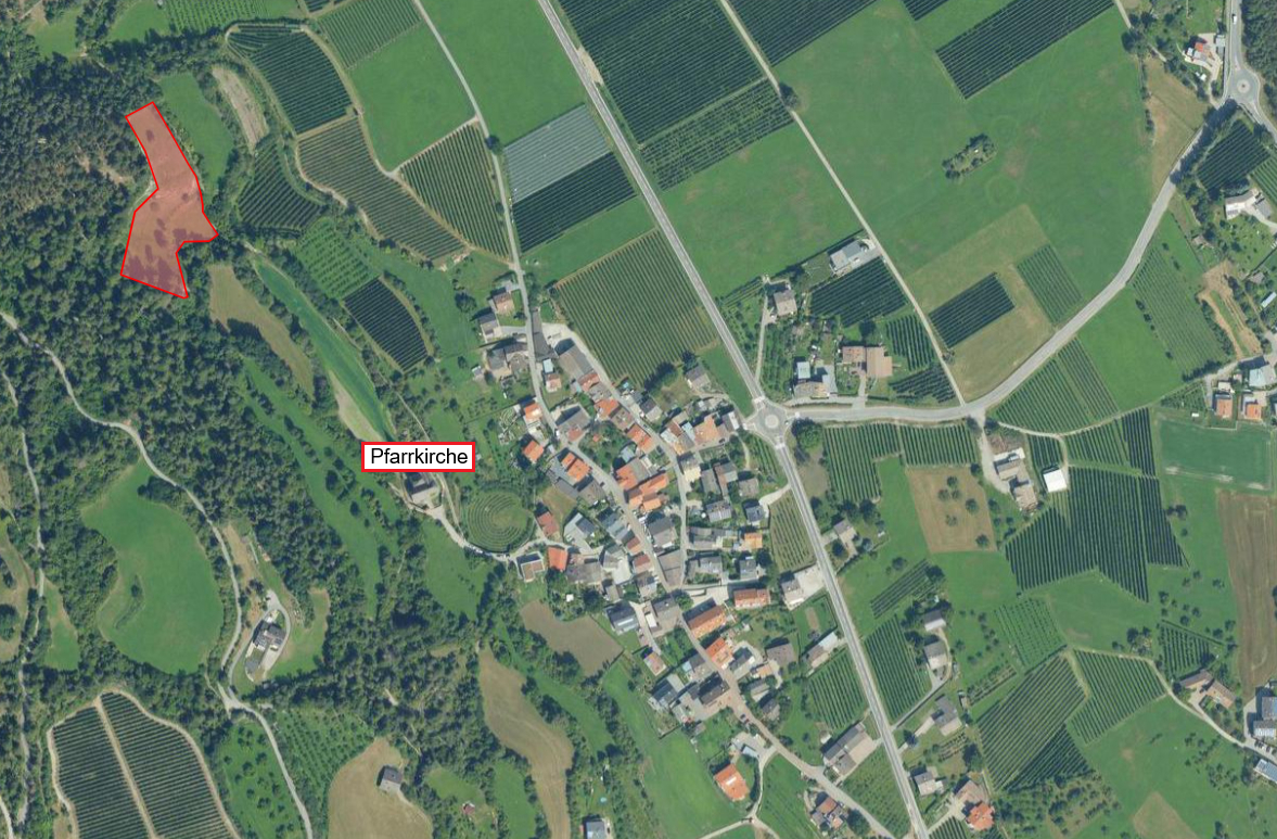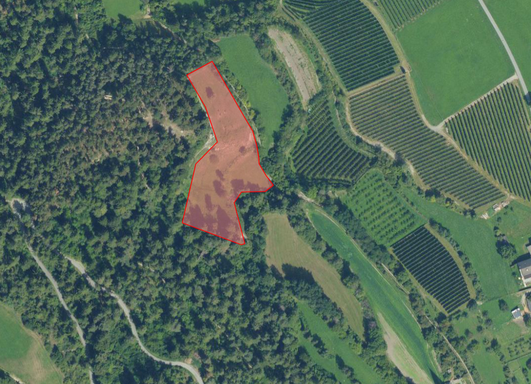 Zum Verkauf steht ein landwirtschaftliches Grundstück nahe dem "Gumperleweg", etwas oberhalb von Agums.