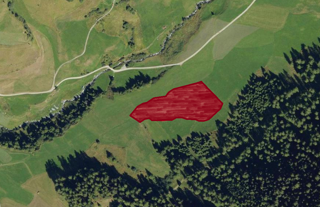 Das Grundstück wird derzeit als Futterwiese genutzt und hat eine Katasterfläche von 10.826 m².