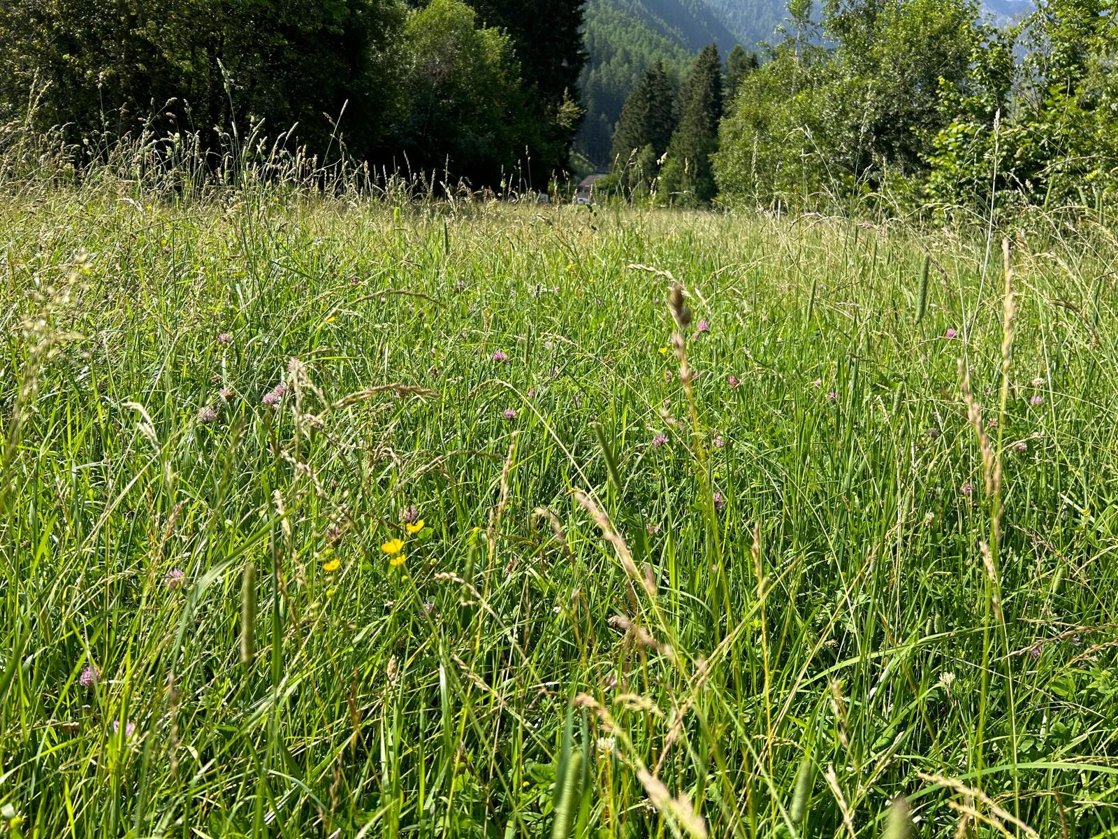 Die Wiese kann maschinell bearbeitet werden, da sie eine geringe Hangneigung aufweist.