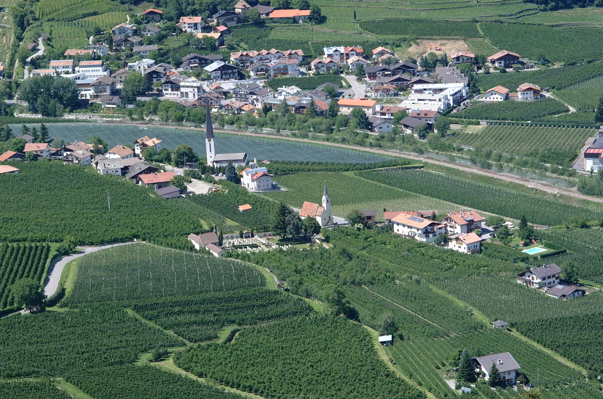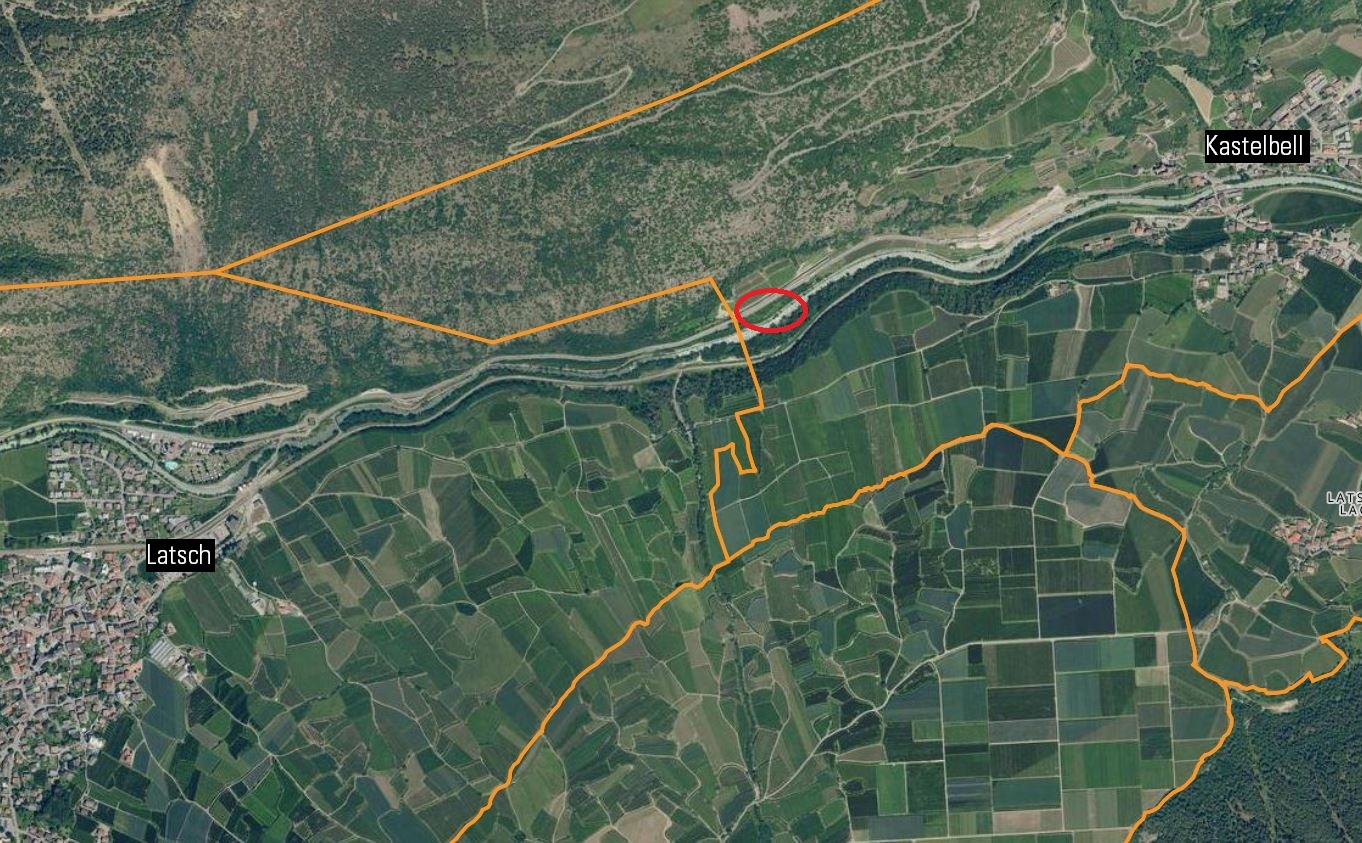 Die Obstwiese befindet sich zwischen den Ortschaften Kastelbell und Latsch, direkt angrenzend an die Staatsstraße.