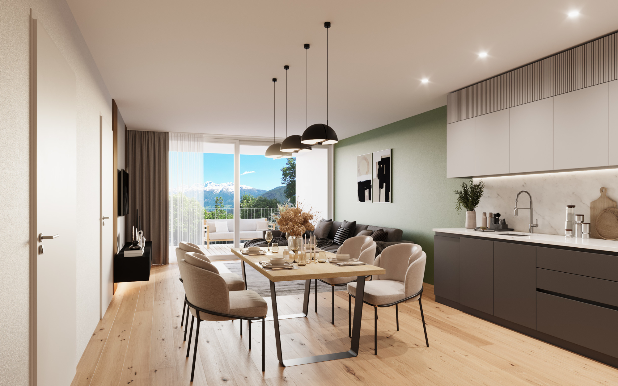 Weiters gehören zur Wohnung eine Terrasse und ein Keller im Untergeschoss.