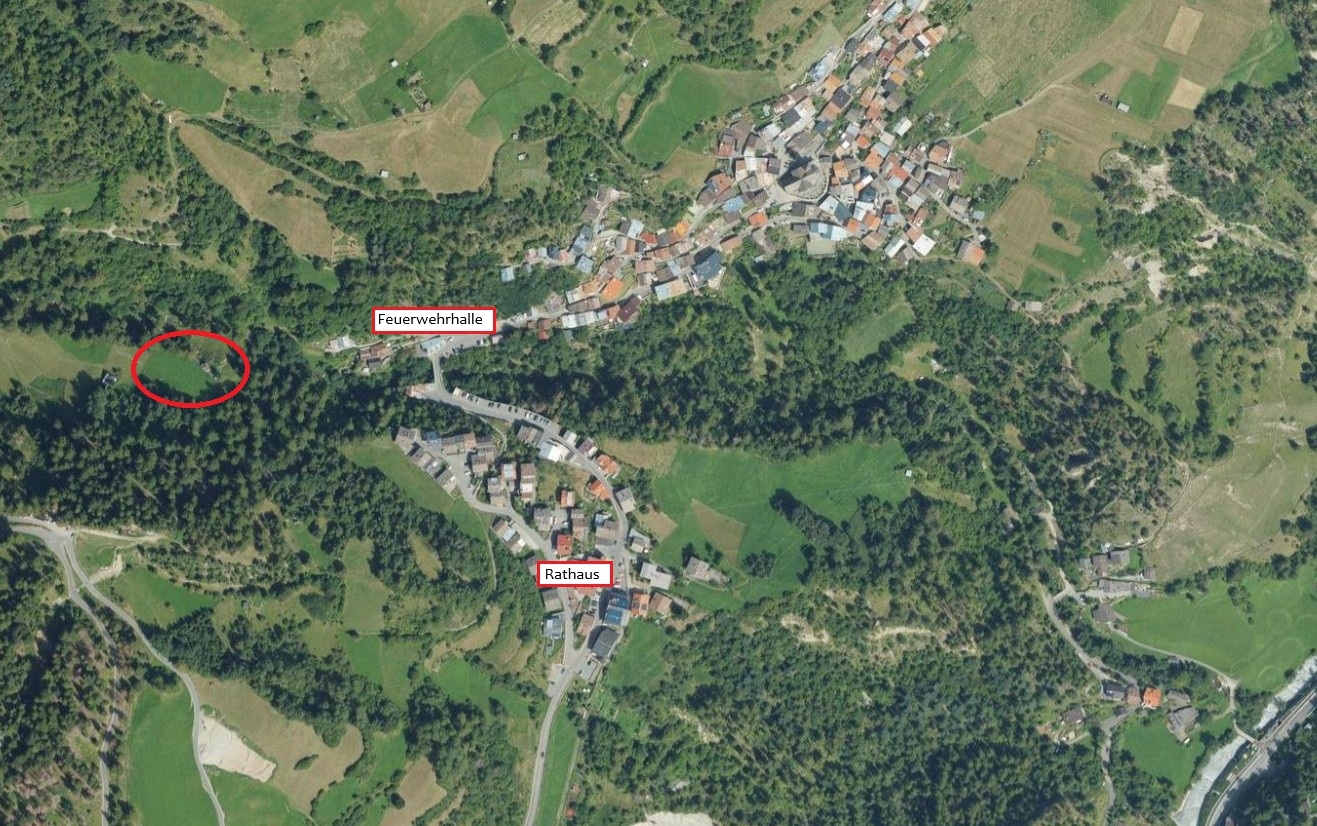 Das umliegende Grundstück hat eine Fläche von ca. 2.740 m², wovon ca. 1.500 m² als Weidefläche und die restliche Fläche von ca. 1.240 m² als Wiese genutzt werden. Die Wiese wurde planiert und ist zweimahdig.