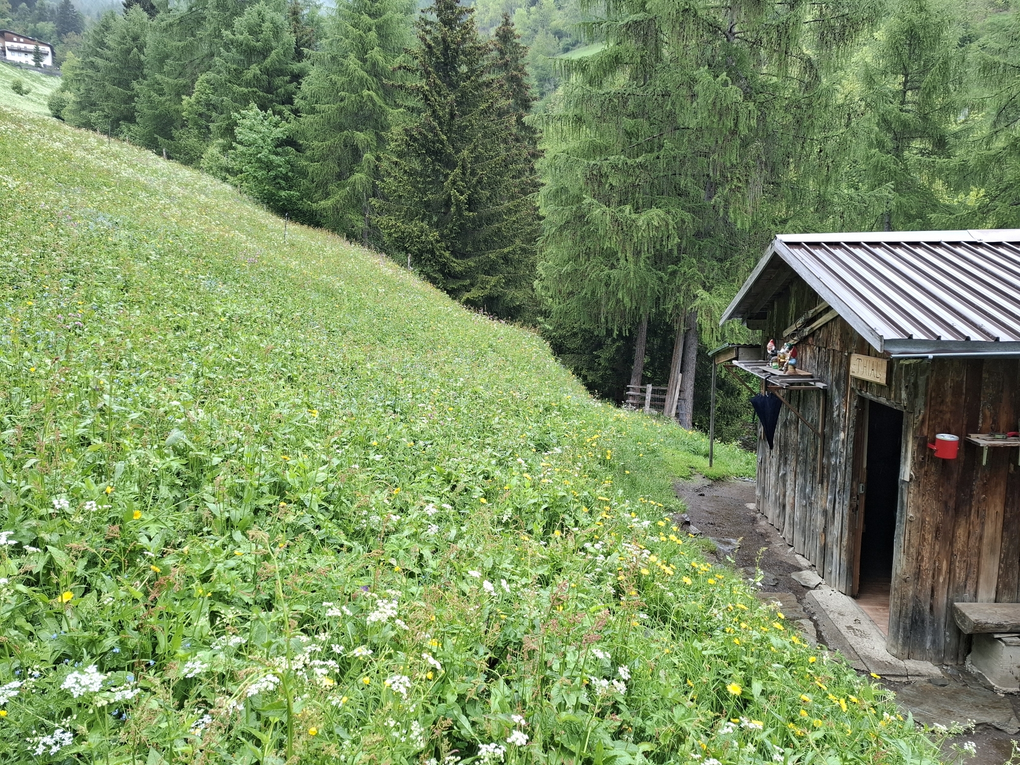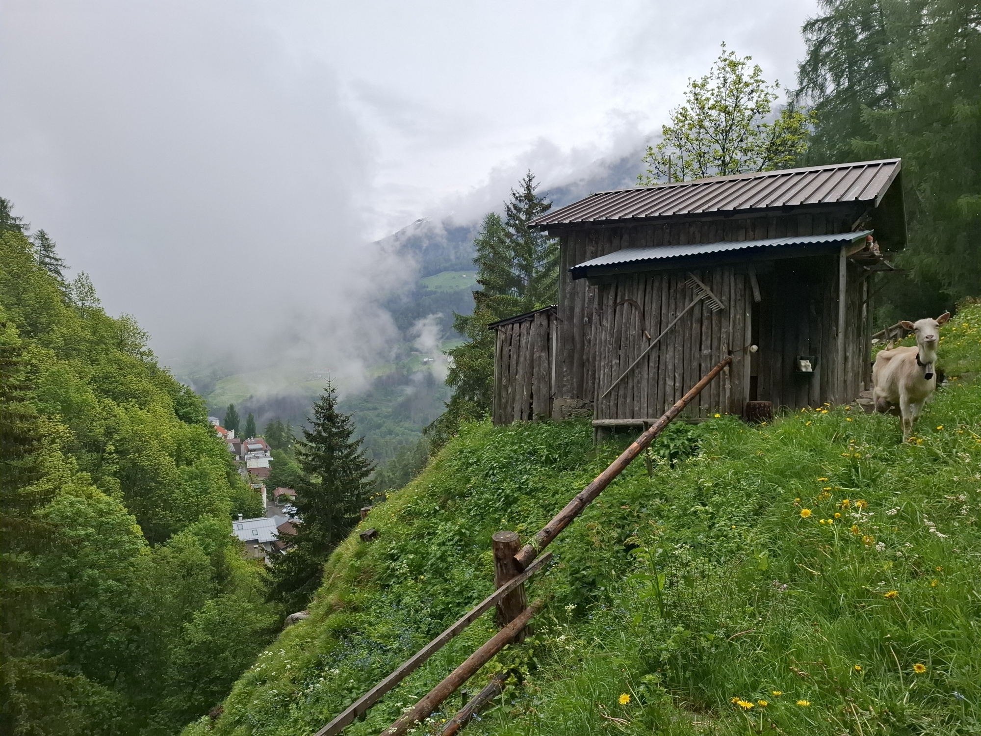 Zum Verkauf steht eine urige Mahdhütte mit umliegendem Grundstück in wunderschöner Panoramalage oberhalb des Bergdorfes Stilfs.