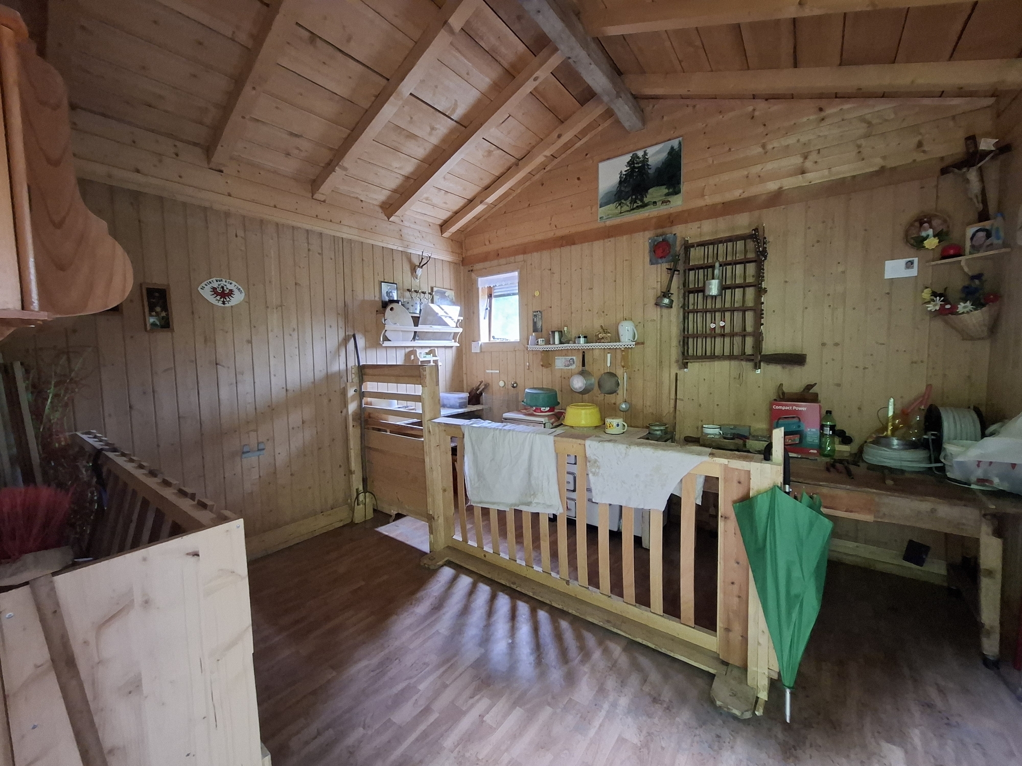 Die Mahdhütte hat eine Fläche von ca. 15 m² und ist mit einem Holzherd samt Kochstelle ausgestattet.