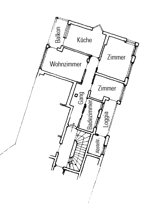 Die Wohnung befindet sich im 2. Obergeschoss eines Mehrfamilienhauses und ist wie folgt eingeteilt: