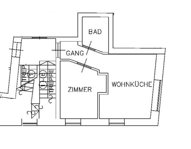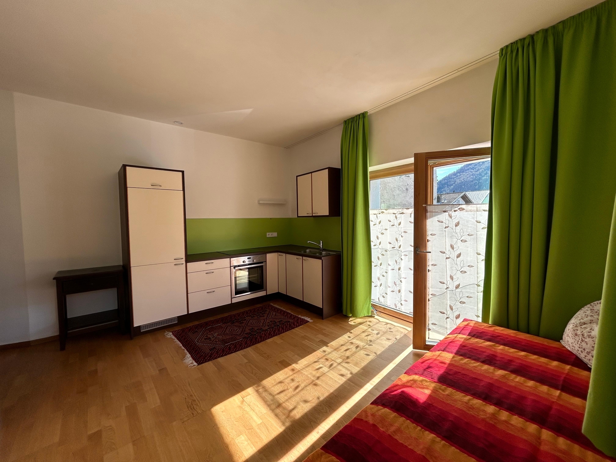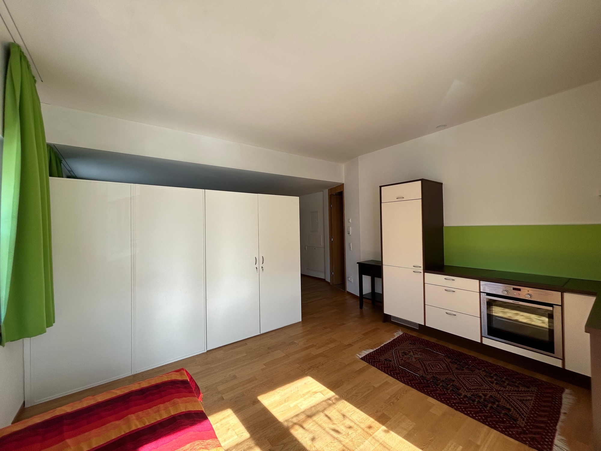 Die Wohnung befindet sich im 1. Obergeschoss eines Mehrparteienhauses und besteht aus einem großzügigem Wohnraum mit Küche, sowie einem Badezimmer und einem französischen Balkon.