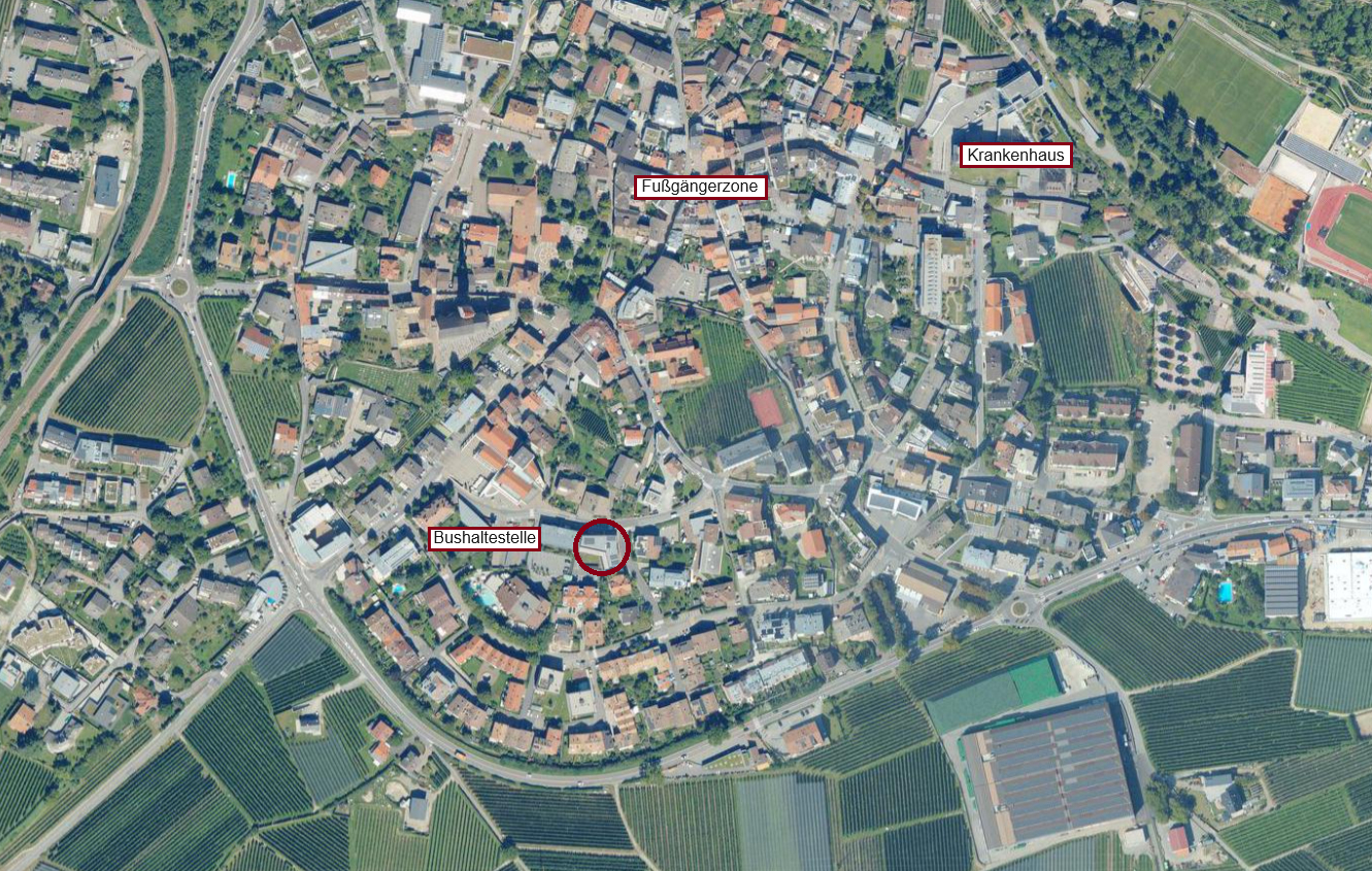 Die Wohnanlage befindet sich in einer sehr zentralen Wohnlage von Schlanders. Das Dorfzentrum mit Geschäften sowie die Bushaltestelle befinden sich in unmittelbarer Nähe.